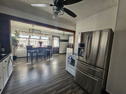 The dining room leads into a large kitchen where all appliances stay, making this space move-in ready. The kitchen has been opened up into a bright enclosed porch, creating extra room that works perfectly for a breakfast nook or cozy sitting area. The flooring throughout this space has been beautifully redone, adding warmth and style.