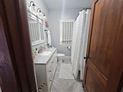To the right of the kitchen/breakfast nook area is a small bedroom, which connects to a hallway leading to a gorgeous updated bathroom and another comfortable bedroom.